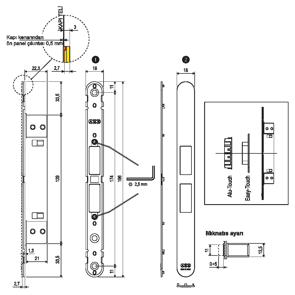 Not: TOUCH, silindir dilli kilitlerin ayar problemlerini kesinlikle önler.