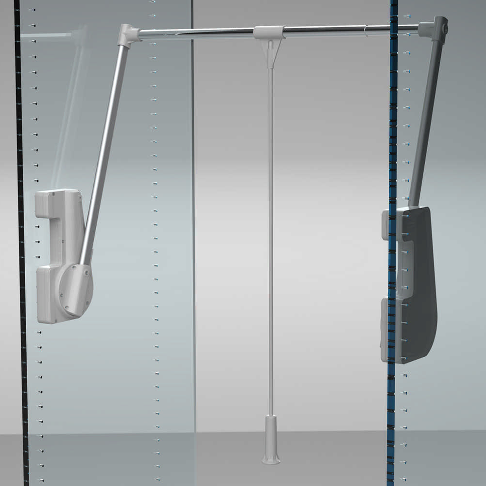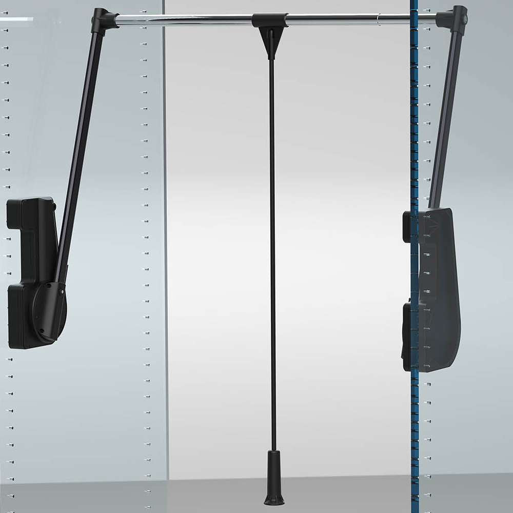 İlave delik açmaya gerek kalmadan sadece Sistem 32 delme işlemi kullanılarak gardıroba uygulanabilir. Tabanların özel şekli, kapı menteşelerini de içine alarak kapı duvarlarına monte edilebilmesine olanak sağlar. Kollarının özel eğimi, kullanıldığında gardıroptan daha fazla kıyafet çıkarılmasına da olanak tanır.