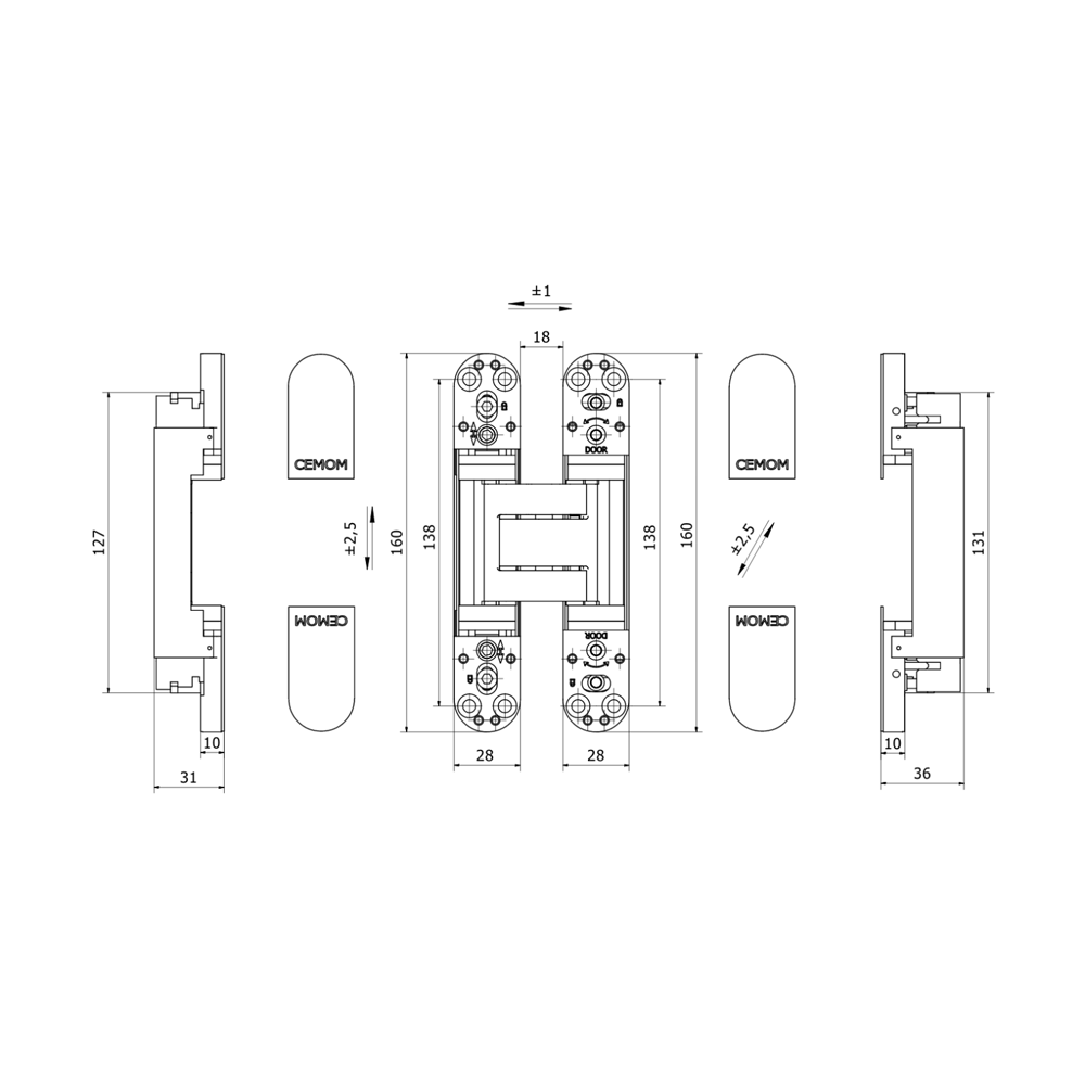 120 dakika yangın dayanımlı 3D Ayarlama imkanı sunan gizli kapı menteşesi CEMOM Estetic 100M, binisiz ahşap iç kapılar için tasarlanmıştır. CEMOM Estetic 100M hem sağ hem de sol kapı panellerine uygundur. Kapıyı 180 derece açmanızı sağlar. Gizli kapı menteşesi zamak alaşımından yapılmıştır.