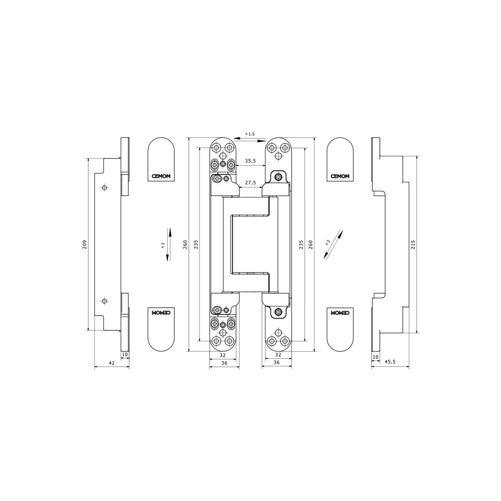 120 dakika yangın dayanımlı 3D Ayarlama imkanı sunan gizli kapı menteşesi CEMOM Estetic 200, binisiz ahşap iç kapılar için tasarlanmıştır. CEMOM Estetic 200 hem sağ hem de sol kapı panellerine uygundur. Kapıyı 180 derece açmanızı sağlar. Gizli kapı menteşesi zamak alaşımından yapılmıştır.