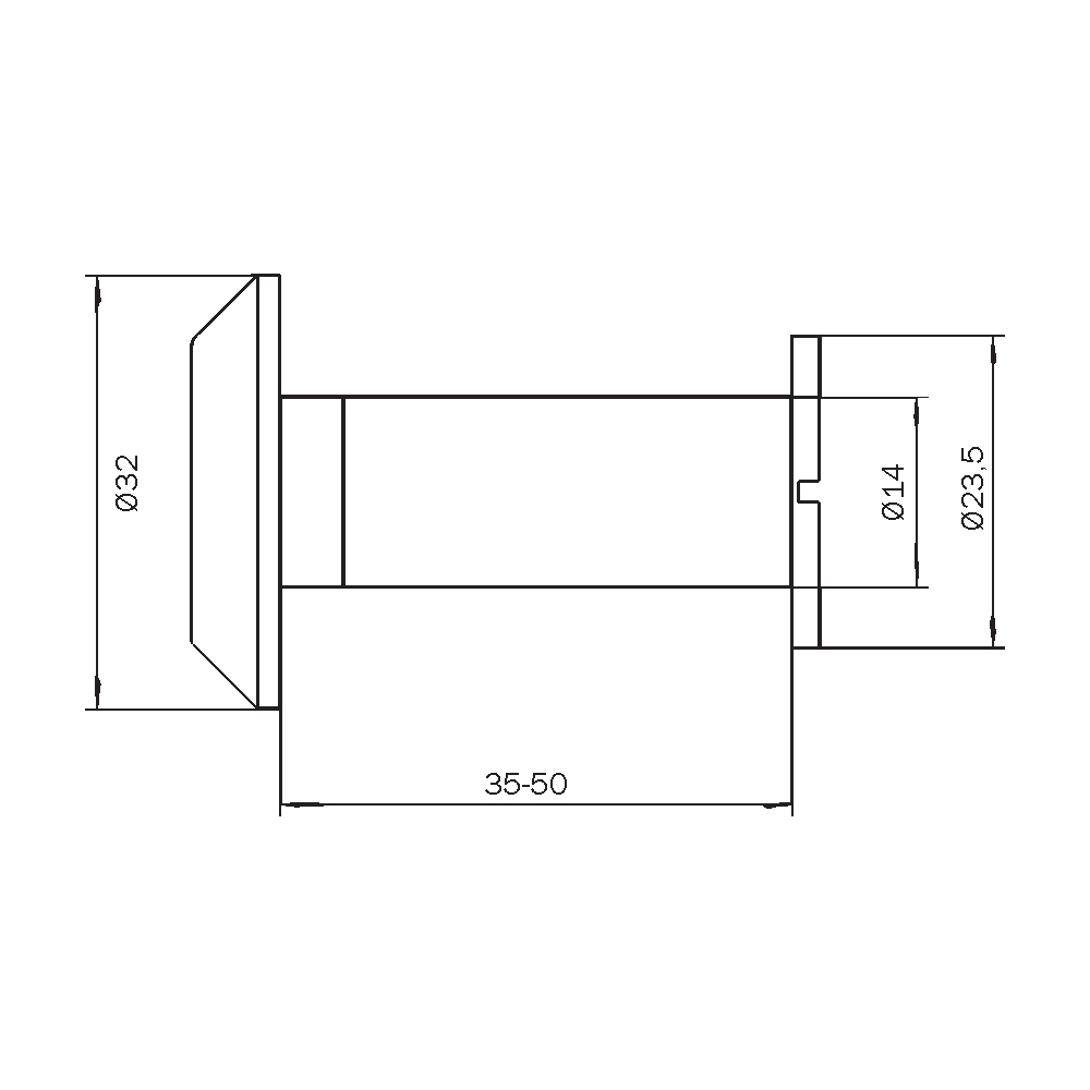 Croma 4006 Yangın Dayanımlı Kapı Dürbünü, 35 ila 50 mm arasında uzunluğunda , 14×32 mm çapında