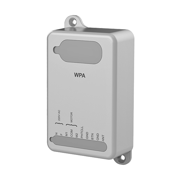 WPA, şirket ürünümüz olan EVS3 serisi kumanda ve WIFI için tasarlanmış fotosel bağlantılı 220V motor kontrol kartıdır. Özel olarak kepenk motorlarının kontrol edilmesi için tasarlanmıştır. Ayrıca harici fotosel bağlantısı ile güvenli bir şekilde kepenk sistemleri kontrol edilebilmektedir.